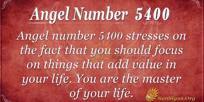 In a nutshell, angel number 5400 emphasizes the importance of focusing on things that bring value to your life. You are the master of your life. One of the key concepts to understand about 5400 is that it revolves around the idea that you are the creator of your own life.