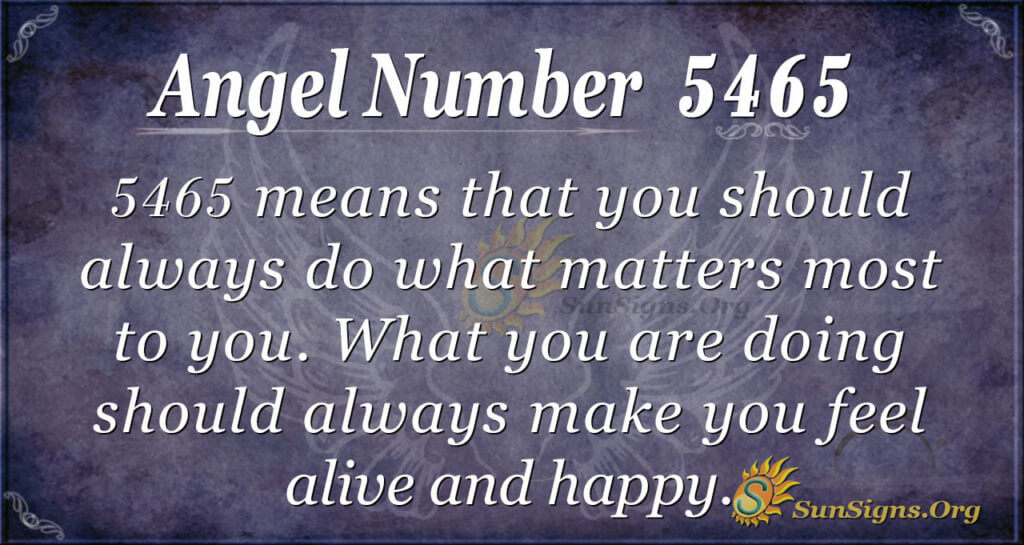 5465 means that you should always do what matters most to you. What you are doing should always make you feel alive and happy. Moreover, it would help if you did not let other people’s expectations and ideas limit who you are.
