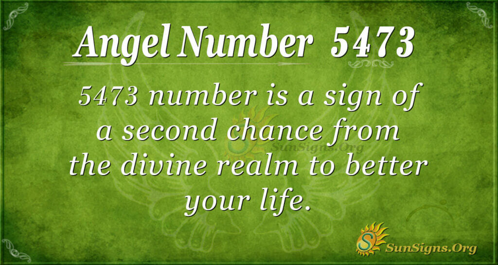 The number 5473 signifies a second chance from the divine realm to better your life. You have another chance to right the wrongs in your life. Put the chance that you have into good use and start making amends.