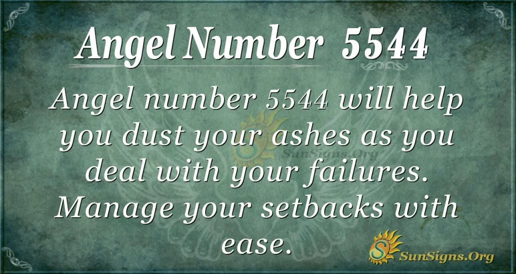 In essence, you have a long way up. The pit you are in is deep. On the contrary, you have a ladder to help you climb back to normalcy. Angel number 5544 will help you dust your ashes as you deal with your failures. With it, you can manage your setbacks with ease.