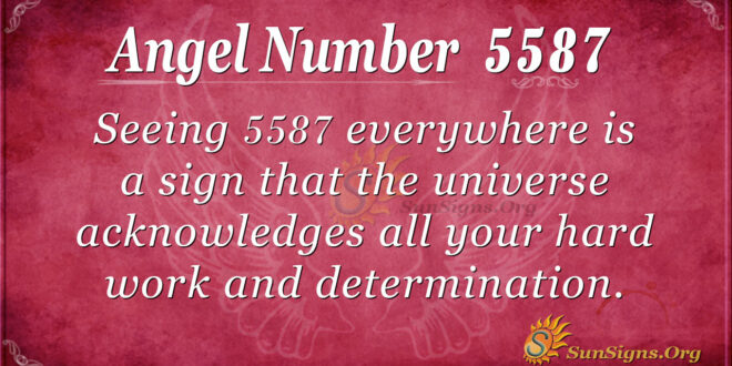 5587 angel number is a combination of the energies and vibrations of the numbers 5, 8, and 7. Number 5 urges you to do all you can to manifest all your desires.
