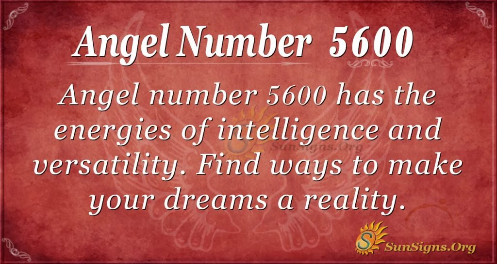 5600 angel number is a message from your guardian angels that you possess natural intelligence and adequate curiosity to enable you to make something great out of your life. You should use your intelligence to make important decisions and choices that will positively impact your life. Being curious will enable you to set more goals for yourself. Regularly feed your mind and learn new things so that you can advance to the next level of your life.