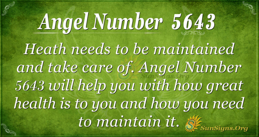 The recurring 5643 angel number indicates that good health starts with you. So, you need to learn how to love yourself and have self-care to stay healthy for long and have many years on earth.