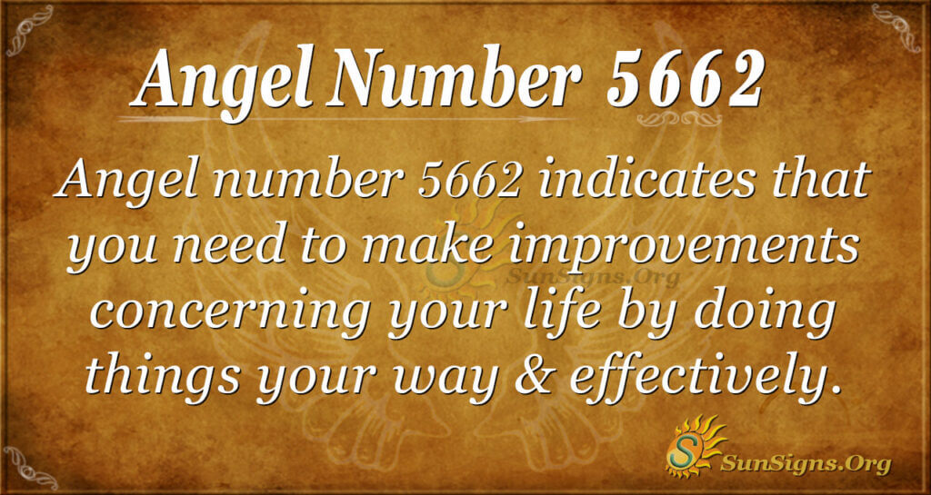 Things you should know about 5662 immense improvements will take part in your life. It would help to let go of everything you are doing and follow your instincts. You will become successful quickly if only you let your inner wisdom take charge.