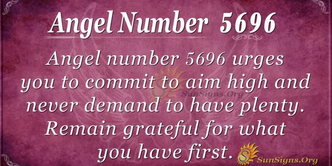 What does number 5696 stand for? The number 5696 in angel number 5696 represents balance, love, spiritual awakening, and change. Irrespective of how difficult life can be, the Divine asks you not to give up.