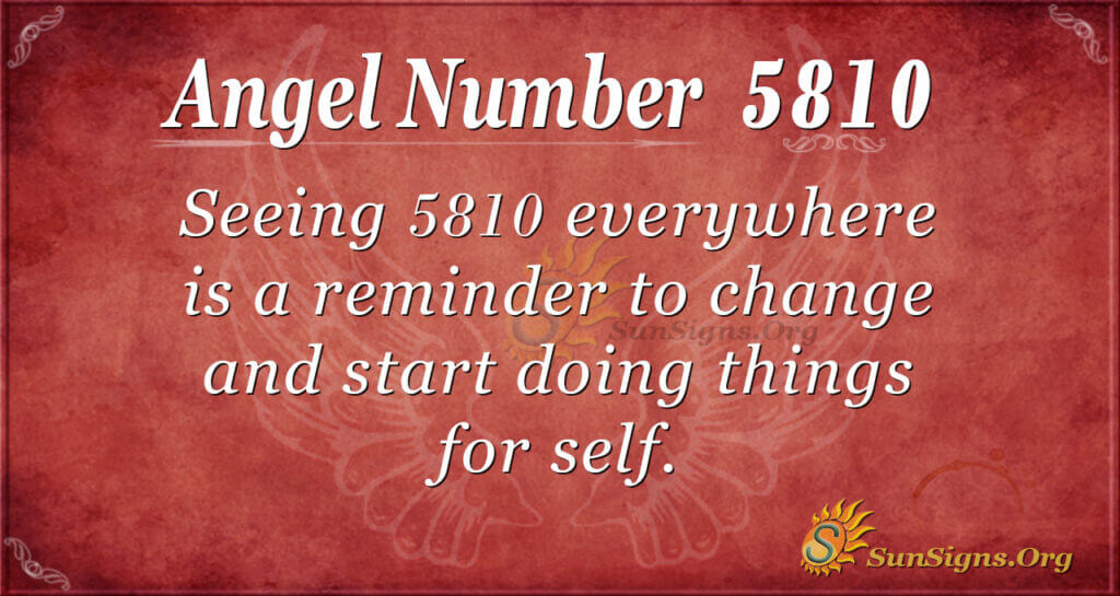 The first thing you should look for is independence. Angels want to make you stronger to serve when serving others. So, seeing 5810 everywhere reminds you to change and start doing things for yourself. Additionally, a good life needs perfect decisions according to your specifications. In essence, 5810 symbolism resonates with a clear mind focused on excellence.