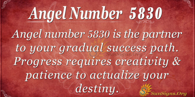 Angel number 5830 is the partner to your gradual success path. Progress requires creativity and patience to actualize your destiny.