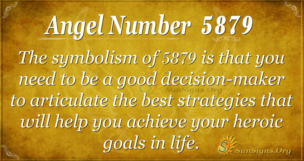 The symbolism of 5879 is that you need to be an excellent decision-maker to articulate the best strategies to help you achieve your heroic goals in life.