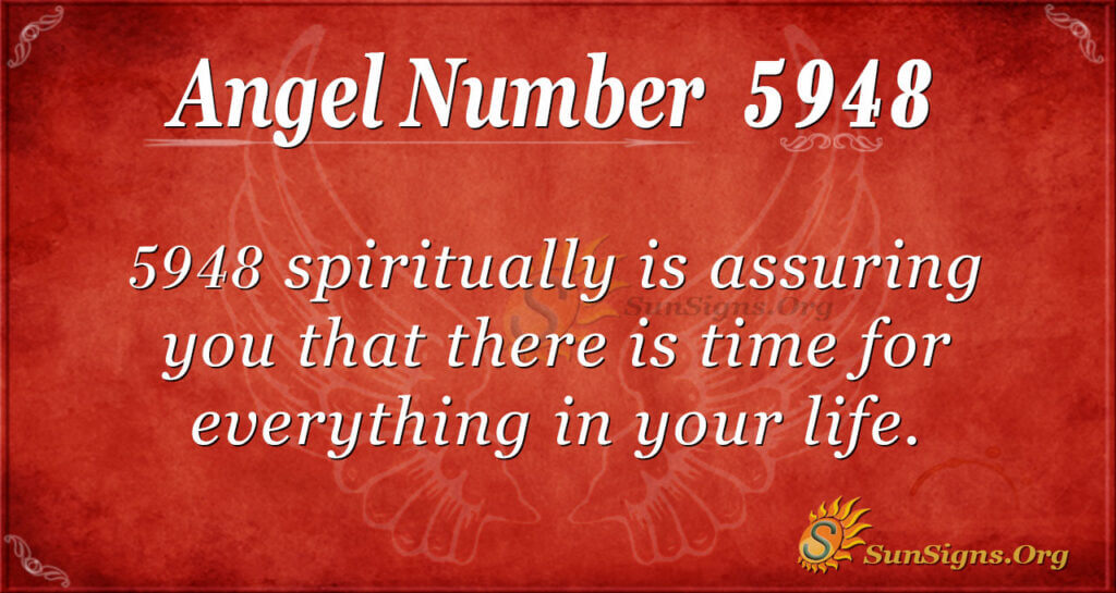 Forget about the people who keep reminding you that you need to get married fast, or the people who keep stepping on you because you do not have a job. 5948 spiritually assures you that there is time for everything in your life.