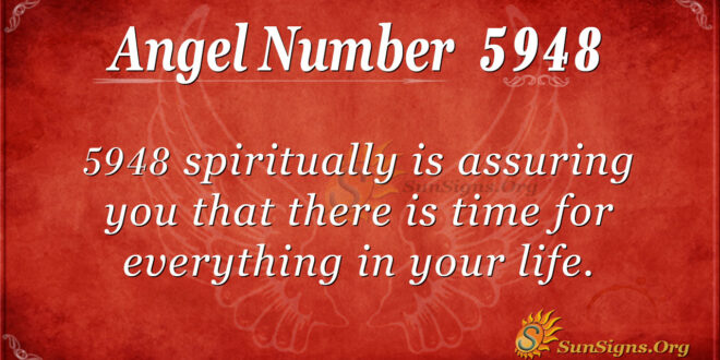 5948 resonates with the energies and vibrations of the numbers 5, 9, 4, and 8. Number 5 teaches you to inspire yourself by living a good life.