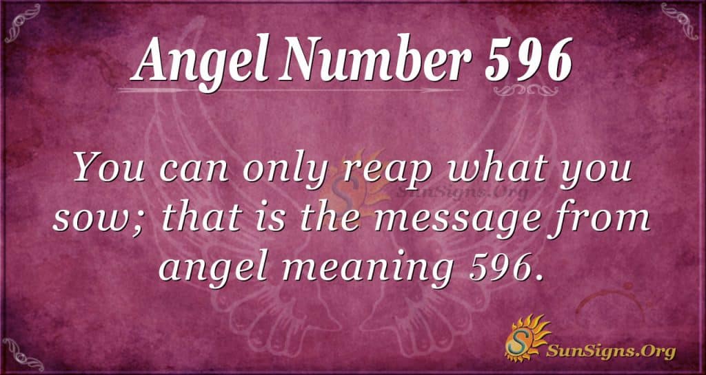 Never give up because you have done many wrong things. Angel Number 596 encourages you to turn around and start your life afresh, no matter how long you have traveled in the wrong direction. Life is fair enough to give you opportunities to correct your mistakes.