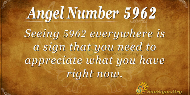This angel number asks you to apologize when you should and let go of the things that are not working in your life. 5962 Symbolism will teach you how to give cheerfully. Do not regret what you do not have in life. Work with what you have.
