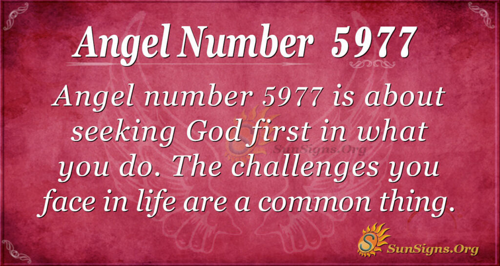 In a nutshell, angel number 5977 conveys a profound message about prioritizing God in your actions. The challenges you face in life are common to other people.
