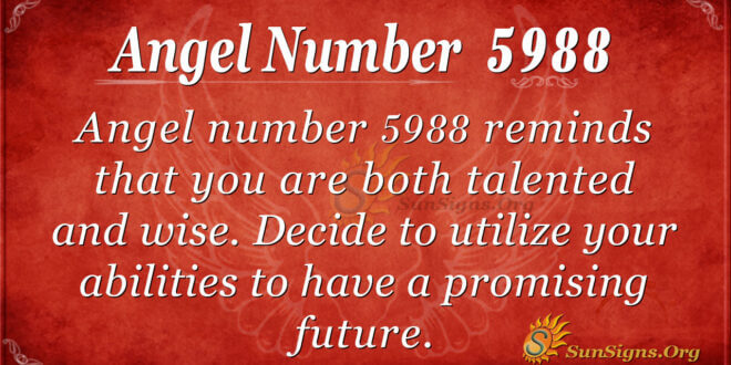 Facts about 5988 are that it appears to you in your low moments to give you hope. The guardian angels reassure you that it is not your fault that things did not work out in your job as you would wish.