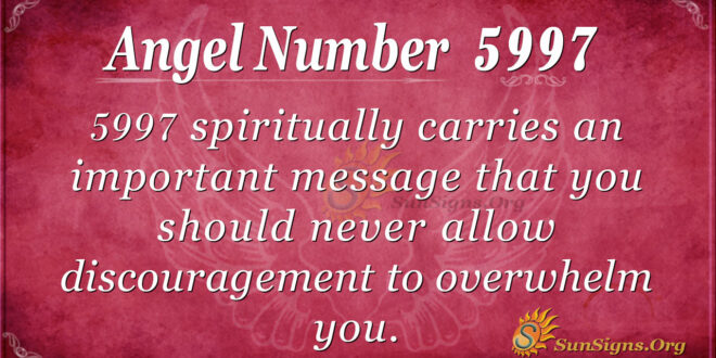 5997 spiritually carries an important message: Never allow discouragement to overwhelm you. Sure, you have big dreams. However, the mere fact that they seem far-fetched shouldn’t discourage you from taking the risk. 5997 suggests that you should develop a strong mindset towards your big goals. Keep in mind that big dreams require commitment and perseverance.