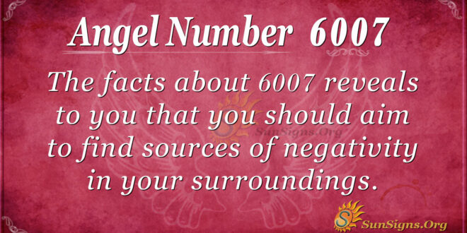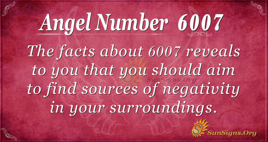 Additionally, the facts about 6007 reveal that you should aim to identify sources of negativity in your surroundings. Perhaps your friends or family keep filling you with destructive thoughts. It could be that you gaze too much on the TV or waste time on the internet. Ensure that you feed your mind with productive things.