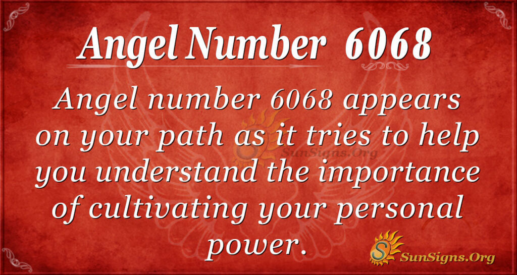 Angel number 6068 appears on your path as it tries to help you understand the importance of cultivating your power. We all yearn for respect from the people we care about, whether friends, family, or co-workers. This and more are only possible when you build your power.