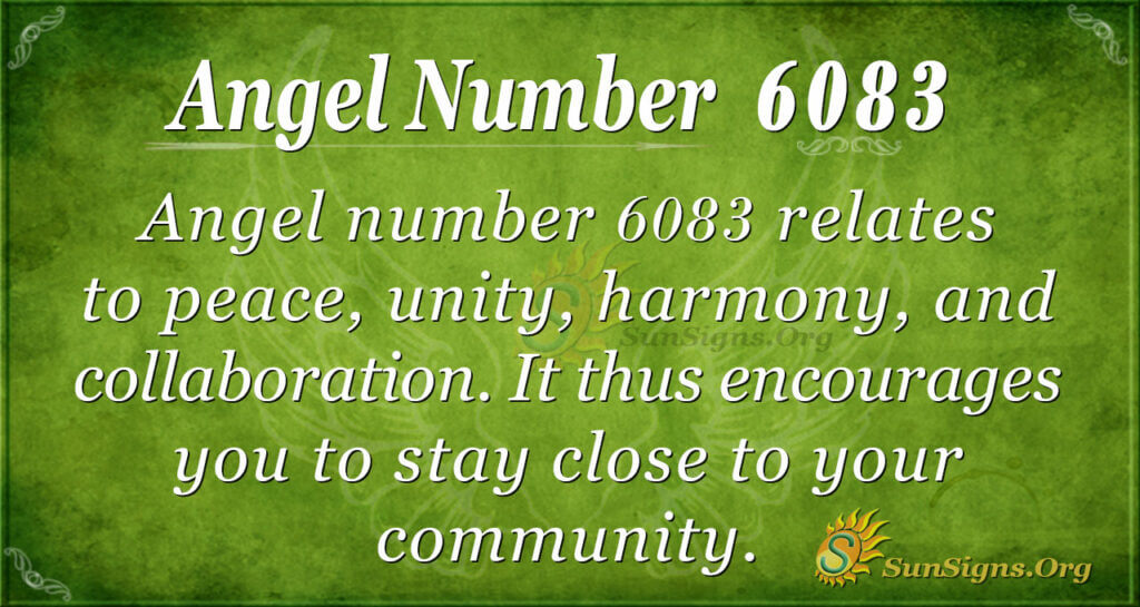 So, what does 6083 mean symbolically? Angel number 6083 is a symbol of a close and loving community. It thus urges you to connect to the people around you. Then, number 6083 represents an ideal world. In this world, people live in unity and harmony.