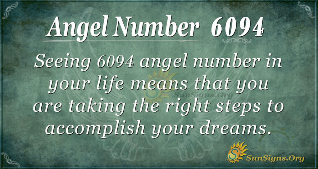 Seeing the 6094 angel number in your life means that you are taking the right steps to accomplish your dreams. As a result, angels have recognized your effort. So, let go of doubt and be encouraged to trust in yourself and the Divine.