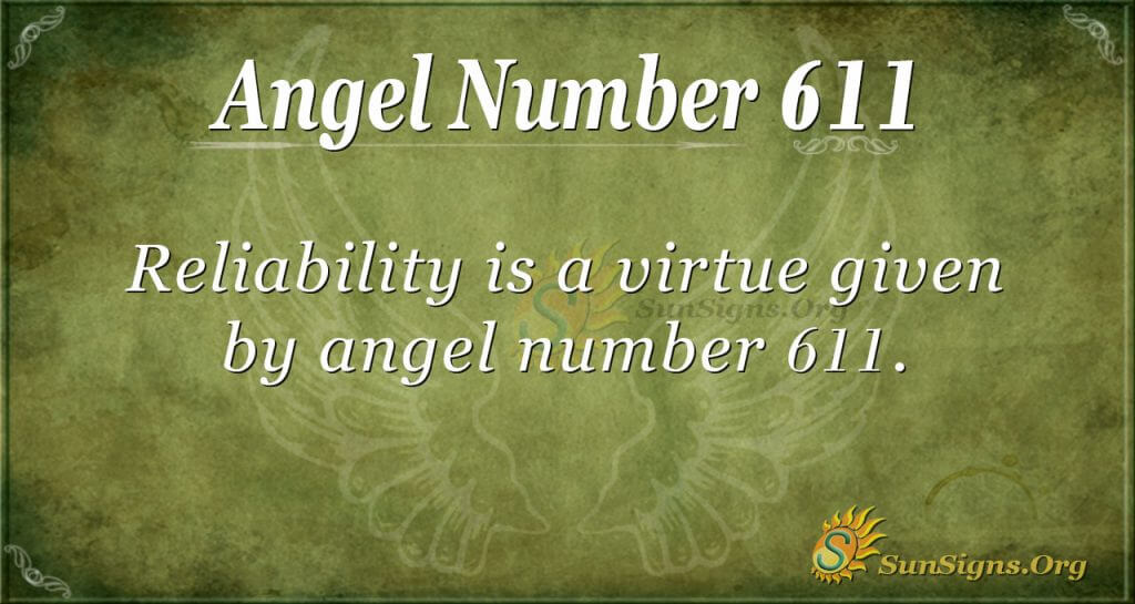 Number meaning for 611 comes with many indications. Number 6 is a sign of responsibility. This is being generally mature. 1 symbolism is a number of individuality. It comes with aspects of discipline and respect. 61 is a number of reliability. This is giving people a reason to depend on you. Number 11 is a starter number, which means changing for the better. 611 focuses on the character of a person as a whole.