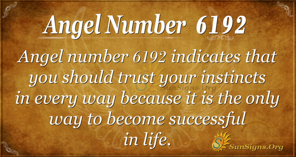 Angel number 6192 indicates that you should trust your instincts in every way because it is the only way to become successful in life. Besides, stunning results come as a result of awareness. Perhaps, your intuition makes you aware of everything that is going to happen in the future. More so, your intuition will give you the future you desire.