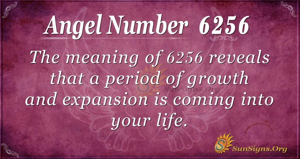 The meaning of 6256 reveals that a period of growth and expansion is coming into your life. It is high time you transition into something better. It would be best if you welcomed a change in your life because it will change your life for the better. The number 6256 is a sign of adventure and new pursuits in life.