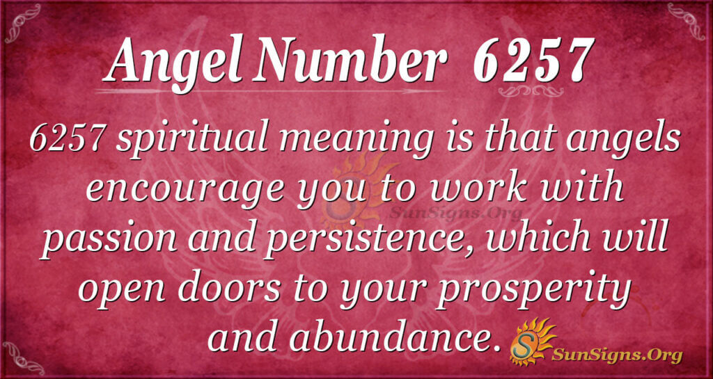 6257 twin flame spiritual meaning is that angels encourage you to work with passion and persistence, opening doors to your prosperity and abundance. Thus, it will help you to progress faster. Likewise, angels want you to be confident regarding your abilities, which calls for a high level of faith. Besides, the divine realm wants you to appreciate your many gifts and talents.