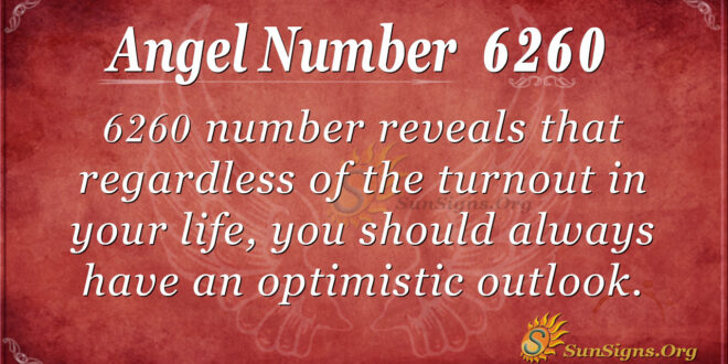 6260 number reveals that regardless of the turnout in your life, you should always have an optimistic outlook. If things do not go as planned, take the lessons you have learned and apply them later in life.