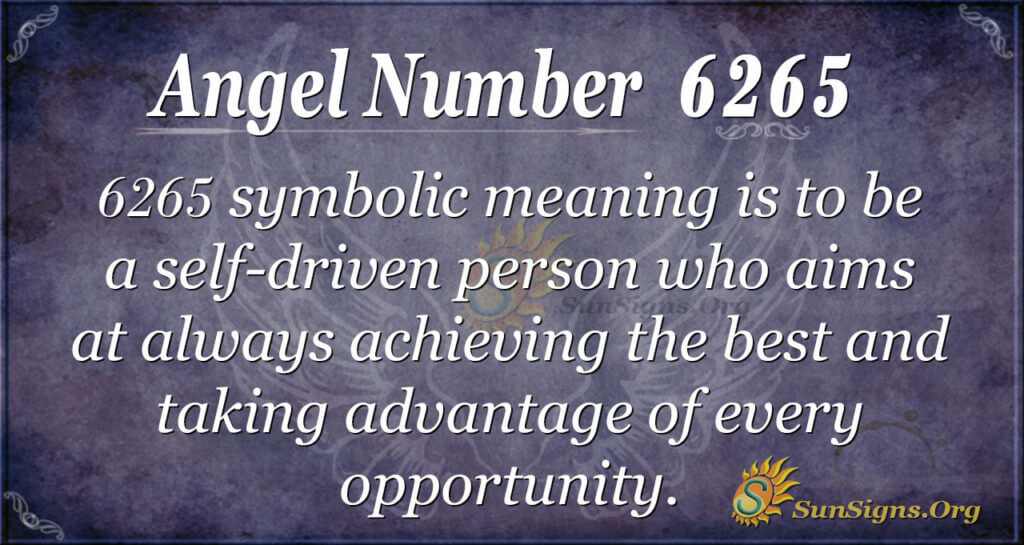 Reserve some time for your personal needs, as you need to have a balance from both angles. 6265 symbolic meaning is to be a self-driven person who aims to achieve the best and take advantage of every opportunity.