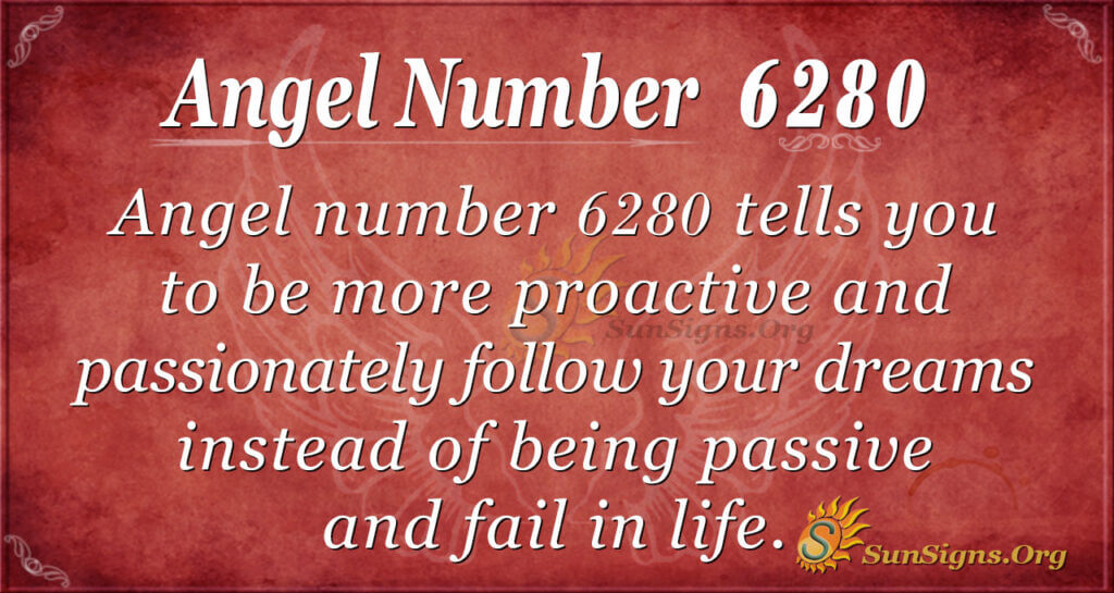 The 6280 symbolism says that it would be wise to make yourself more proactive in all spheres of your life. Pray to God to help you follow and succeed in your goals.