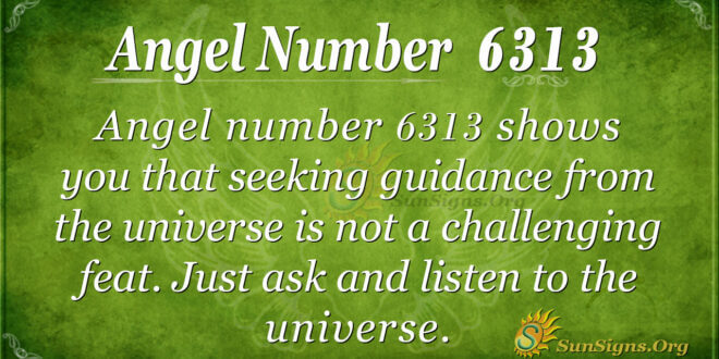 The meaning of 6313 is that you should empower yourself and connect with the universe by asking for what you want. Be optimistic about this; have faith that your angels will guide you.