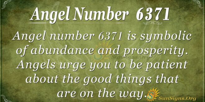 Angel number 6371 is symbolic of abundance and prosperity. The universe is bringing your breakthrough in finances and relationships. You need to prepare enough to space accommodate all of your blessings. Lastly, Angels urge you to be patient about the good things that are on the way.