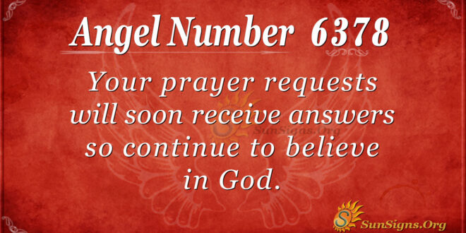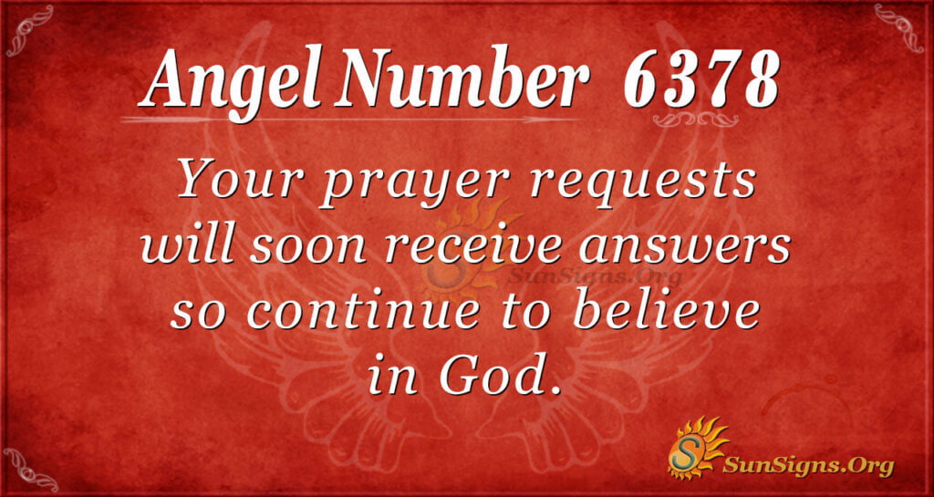 Angel number 6378 symbolizes faith and spiritual enlightenment. When you follow 6378’s meaning, your life will be more meaningful. Besides, your prayer requests will soon receive answers.