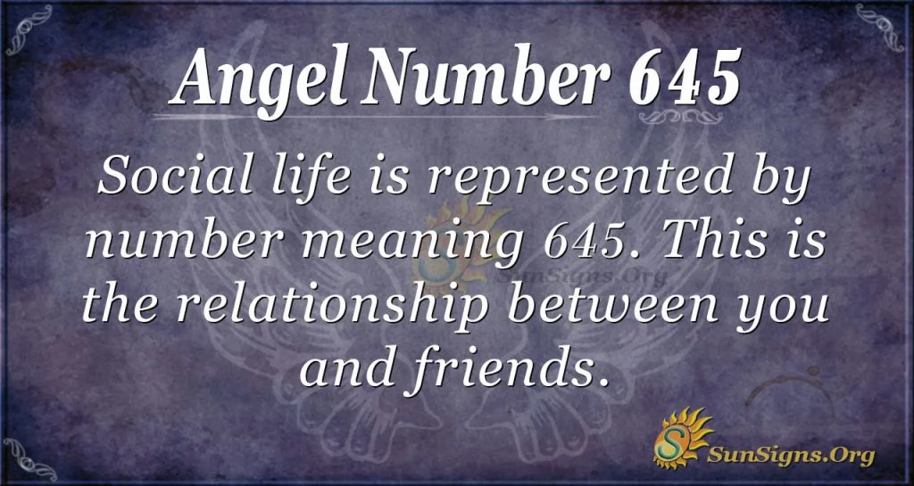 The number 645 is composed of the digits 6, 4, 5, 64, 45, and 65.Angel Number 6 is a symbol of wealth and riches. It also depicts human desire. Also, 4 numerology is a symbol of boundaries. It represents the divine guardians.