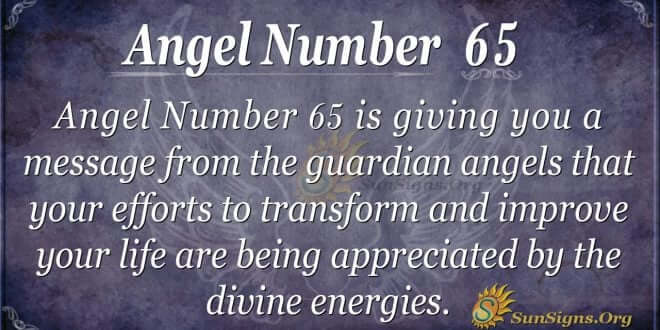 Angel Number 65 gives you a message from the guardian angels that the angels and divine energies appreciate your efforts to transform and improve your life and encourage you to continue the spiritual journey.