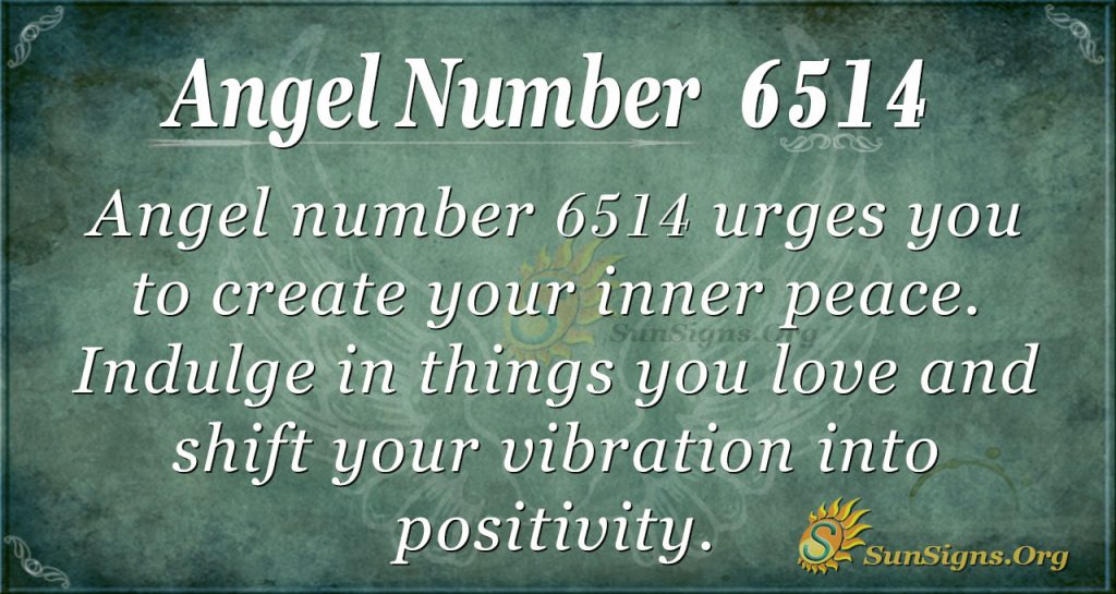 The number 6514 symbolizes love and peace. If you are on the verge of despair and unsure where to turn to, pray for angelic guidance. Afterward, try to think of something that will calm your nerves and invite peace and love. In simple terms, 6514 urges you to create your inner peace. Indulge in things you love and shift your vibration into positivity.