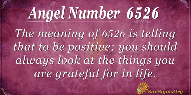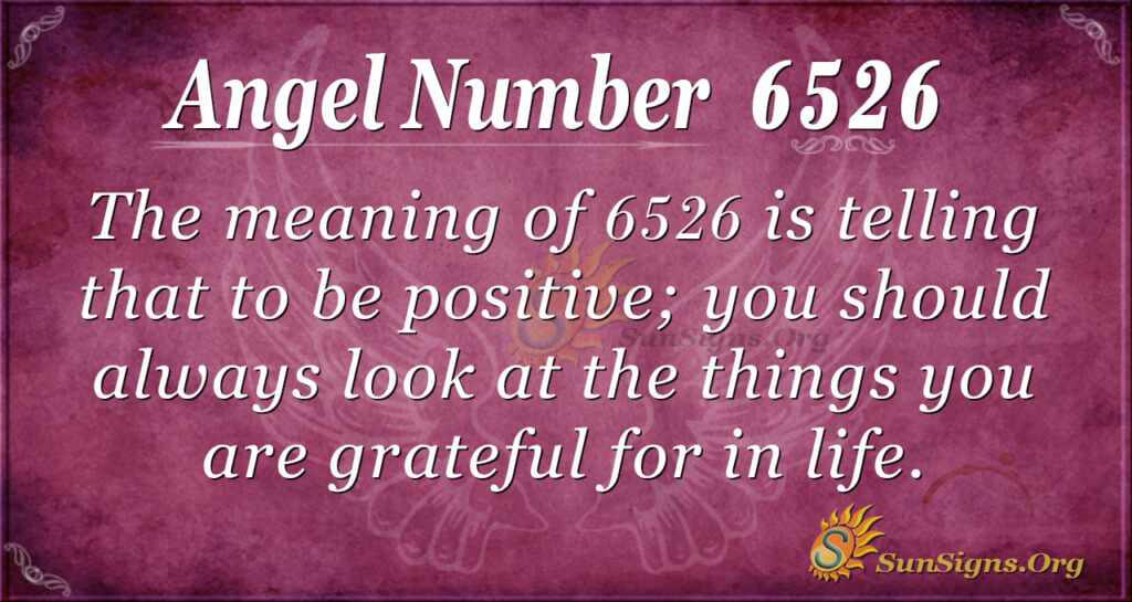 The meaning of 6526 is that to be positive, you should always look at the things you are grateful for in life. Remind yourself of the things that you are thankful for. It helps to lift your mood in times when you are down. Be grateful for your job, family, friends, the network you’ve created, or even the animals you have.