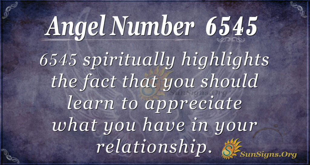 First, 6545 spiritually highlights the fact that you should learn to appreciate what you have in your relationship. Often, people get bored with their partners because they think that there are other perfect people meant for them out there.