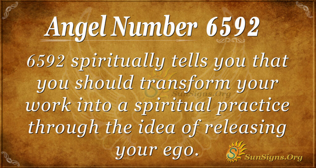 6592 spiritually tells you that you should transform your work into a spiritual practice through the idea of releasing your ego. Releasing your ego helps you to enter the flow state. When in this state, you will often worry less about what other people have to say about you or your work. Instead, you will pay more attention to what you are doing now. The 6592 angel number says that the absence of worry in what you do will fill you with contentment.