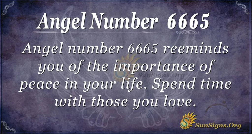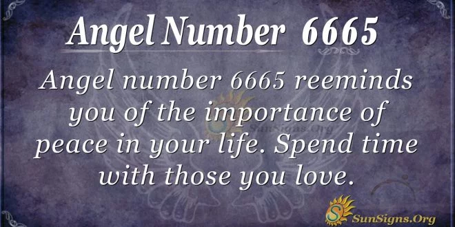 What does number 6665 stand for? Number 6665 in angel number 6665 represents vision, family, balance, and harmony. Mostly the number appears to be those who are experiencing domestic issues. The number 6665 meaning seems to remind you of the importance of peace in your life.