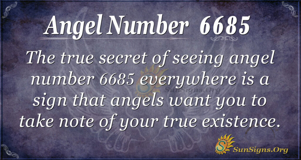 Do you notice 6685 everywhere? The true secret of seeing angel number 6685 everywhere is a sign that angels want you to take note of your actual existence. This includes relationships with others, dependence, and maintaining hope. In brief, angels ask you to treasure possessions and the actions and attributes you will leave behind.