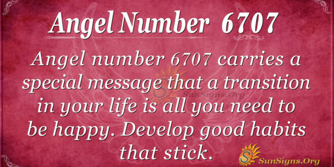 To conclude, angel number 6707 carries a special message that a transition in your life is all you need to be happy. Develop good habits that stick, and life will be worth living.