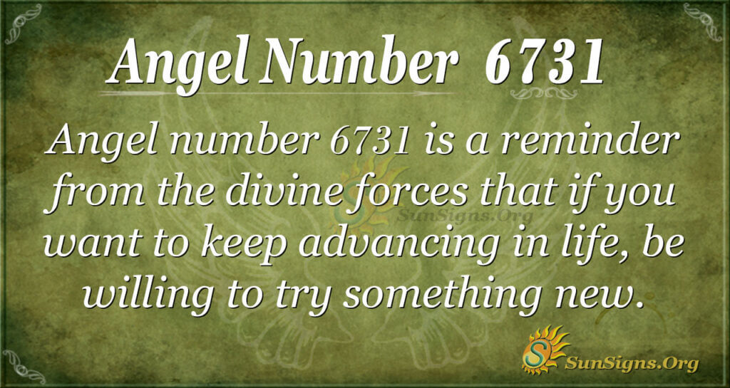 Angel number 6731 reminds the divine forces that if you want to keep advancing in life, be willing to try something new. In other words, life is all about trying new things. Besides, it would help if you let people learn from what you do. Perhaps, they should understand that you are too creative and nothing is impossible in life. Equally, those who think of impossibilities will never change anything in their lives.