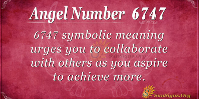 6747 symbolism reveals that working with others smoothens your path to success. You will find that people who are more experienced than you will help you in areas of your weaknesses.