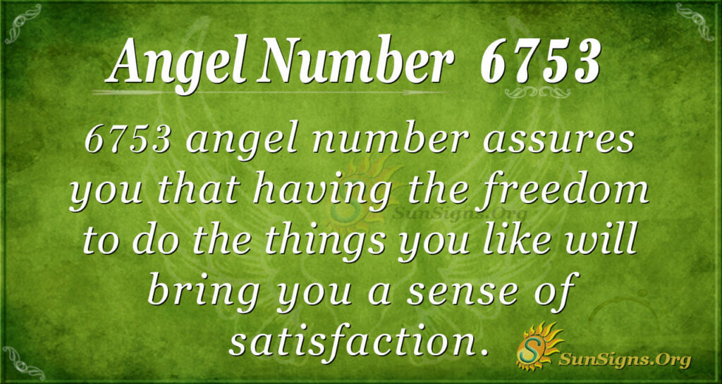 In everything you do, you should work at your own pace and on your own time. Let no one dictate the type of life you should live. The 6753 angel number assures you that having the freedom to do what you like will bring you a sense of satisfaction. You should be proud of all your efforts.