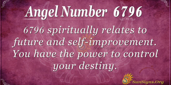 6796 spiritually relates to the future and self-improvement. You have the power to control your destiny. Thus, don’t worry about your current situation or your family’s background. Do your best in your chosen field and leave the rest to God because He controls everything on earth. Besides, hard work always pays.