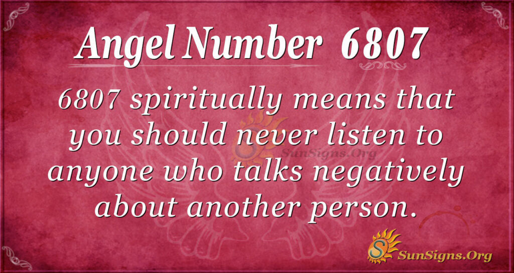 6807 spiritually means that you should never listen to anyone who talks negatively about another person. Equally, that is a sign of bad character.