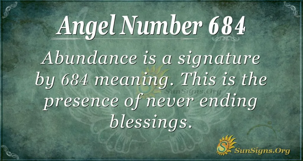 Abundance is a signature of Angel Number 684. This is the presence of never-ending blessings. You have been a very effective worker. You can’t put the loyalty you’ve shown into words. The universe is ready to reward you for your good deeds.