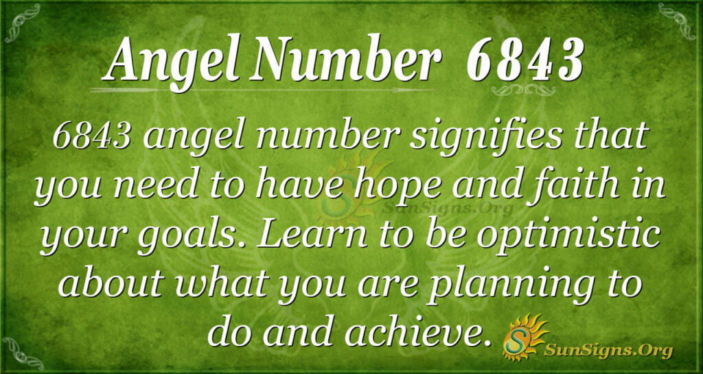 6843 angel number signifies that you need hope and faith in your goals. Learn to be optimistic about what you are planning to do and achieve.