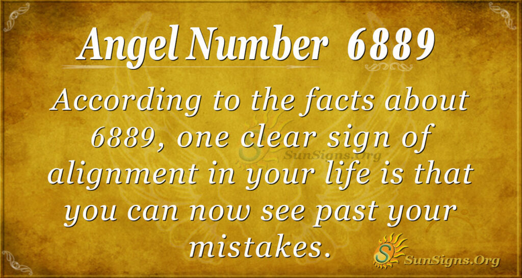 According to the facts about 6889, one clear sign of alignment in your life is that you can now see past your mistakes. A while back, mistakes were monsters to you. Today, you see 6889 angel numbers all around you because this perspective has changed. The angels are happy with your progress. This is the comforting message that they are sharing with you through the meaning of 6889.